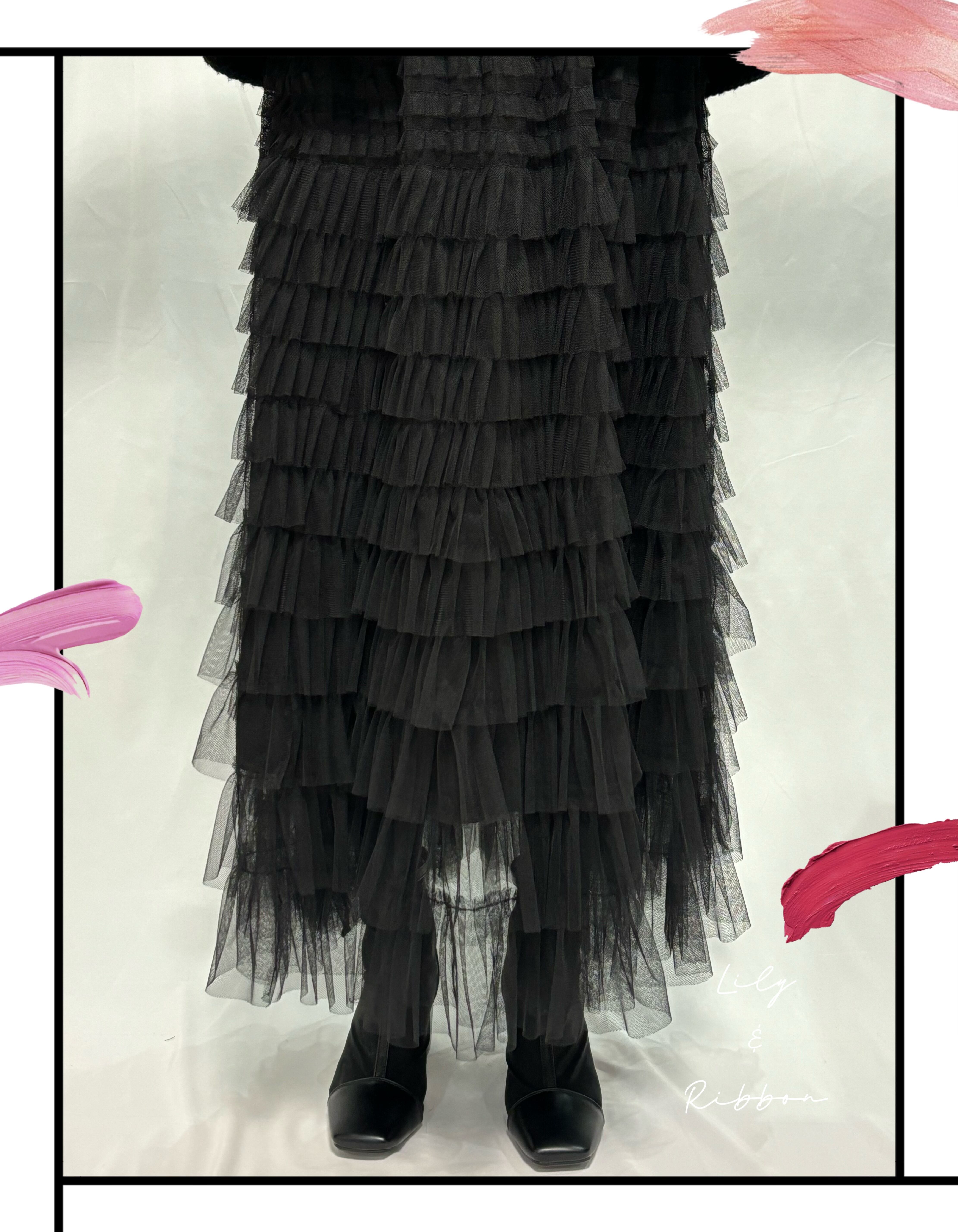 INCEDE インシード フリルたっぷり!チュールスカート♡ブラック M ウエストゴム
