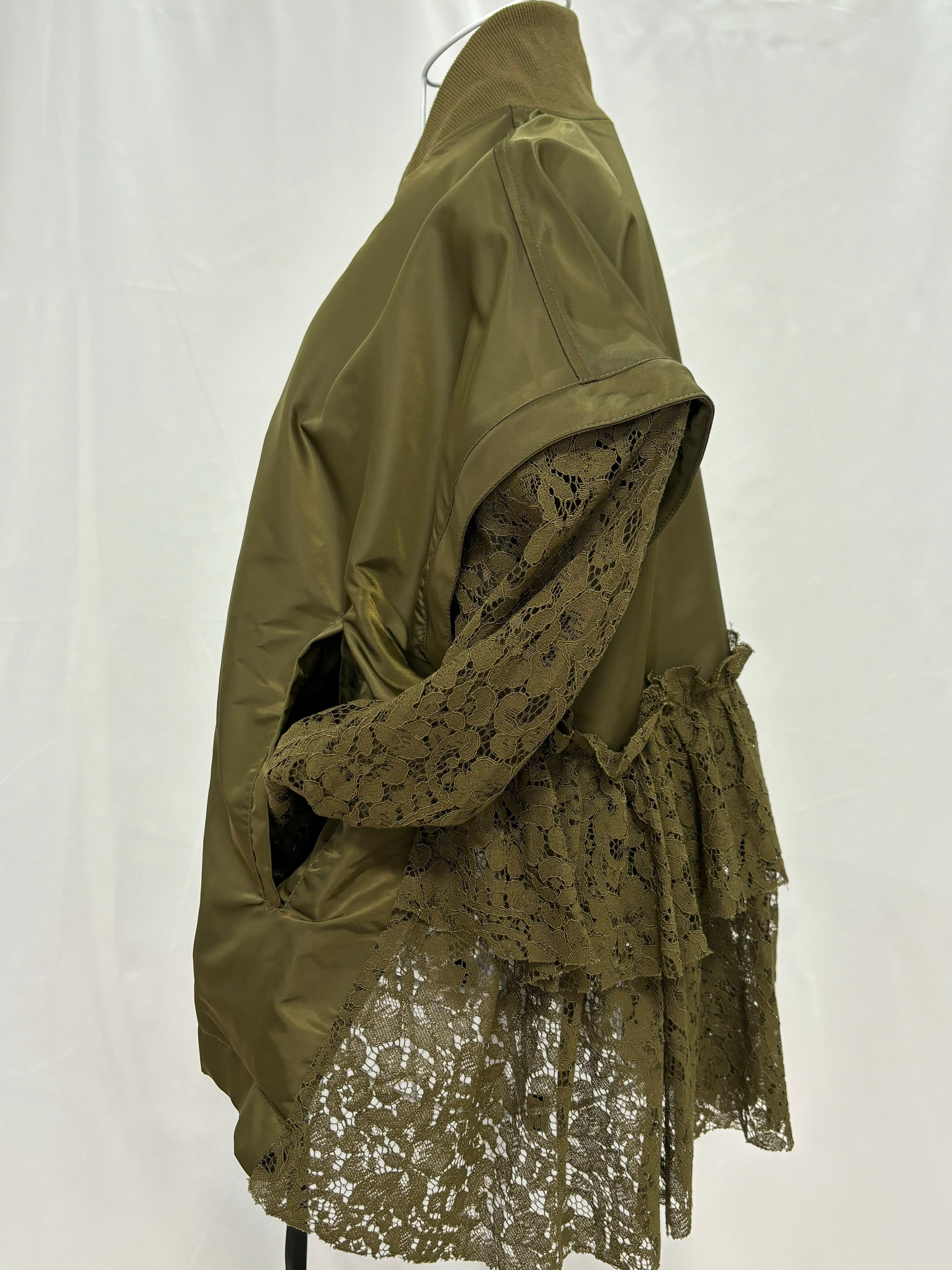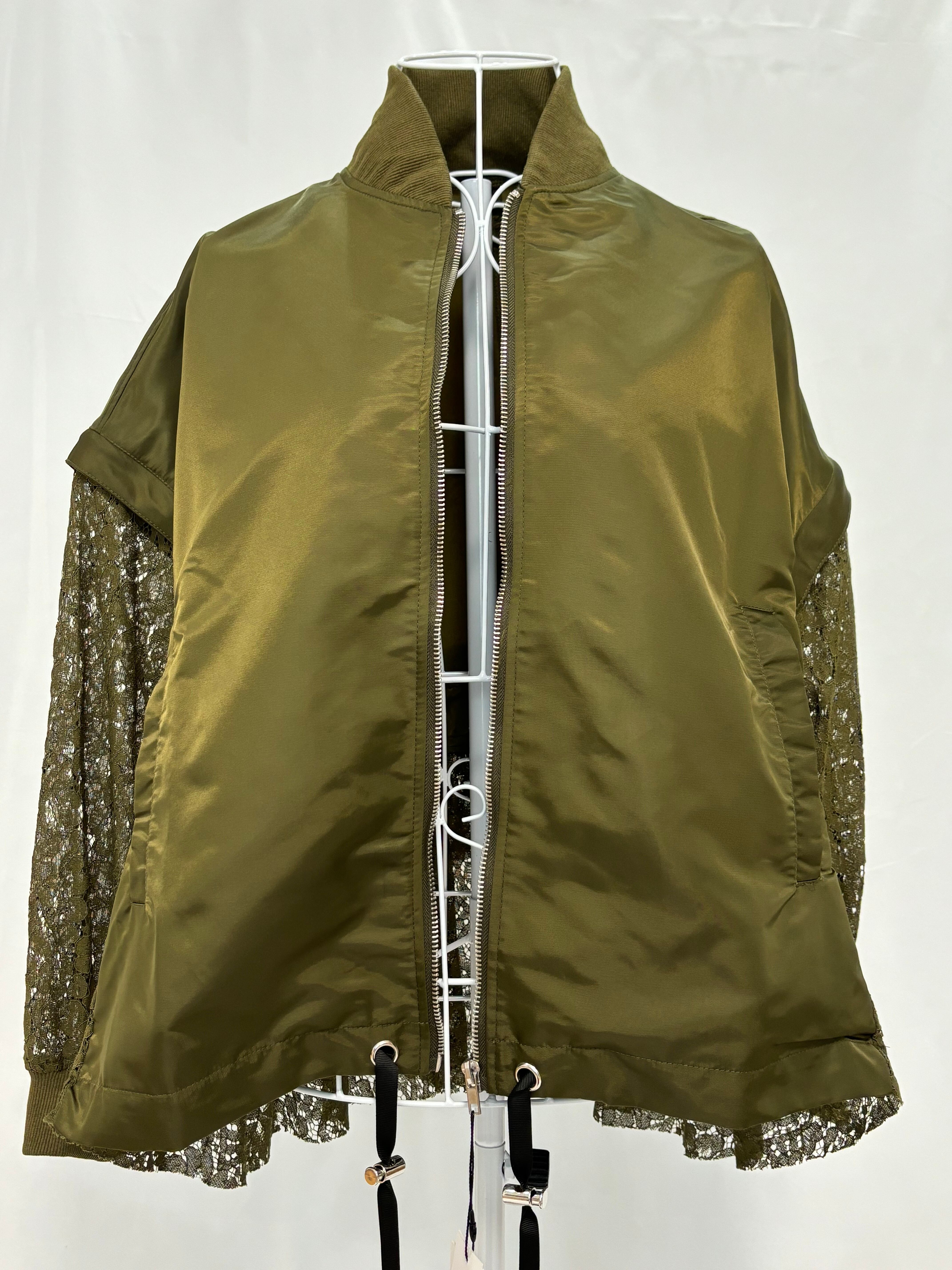 人気完売商品!terrace テラス 2WAYレースドッキングフライトジャケット♡カーキ フライトジャケット ジャンパー ベスト レース切り替え