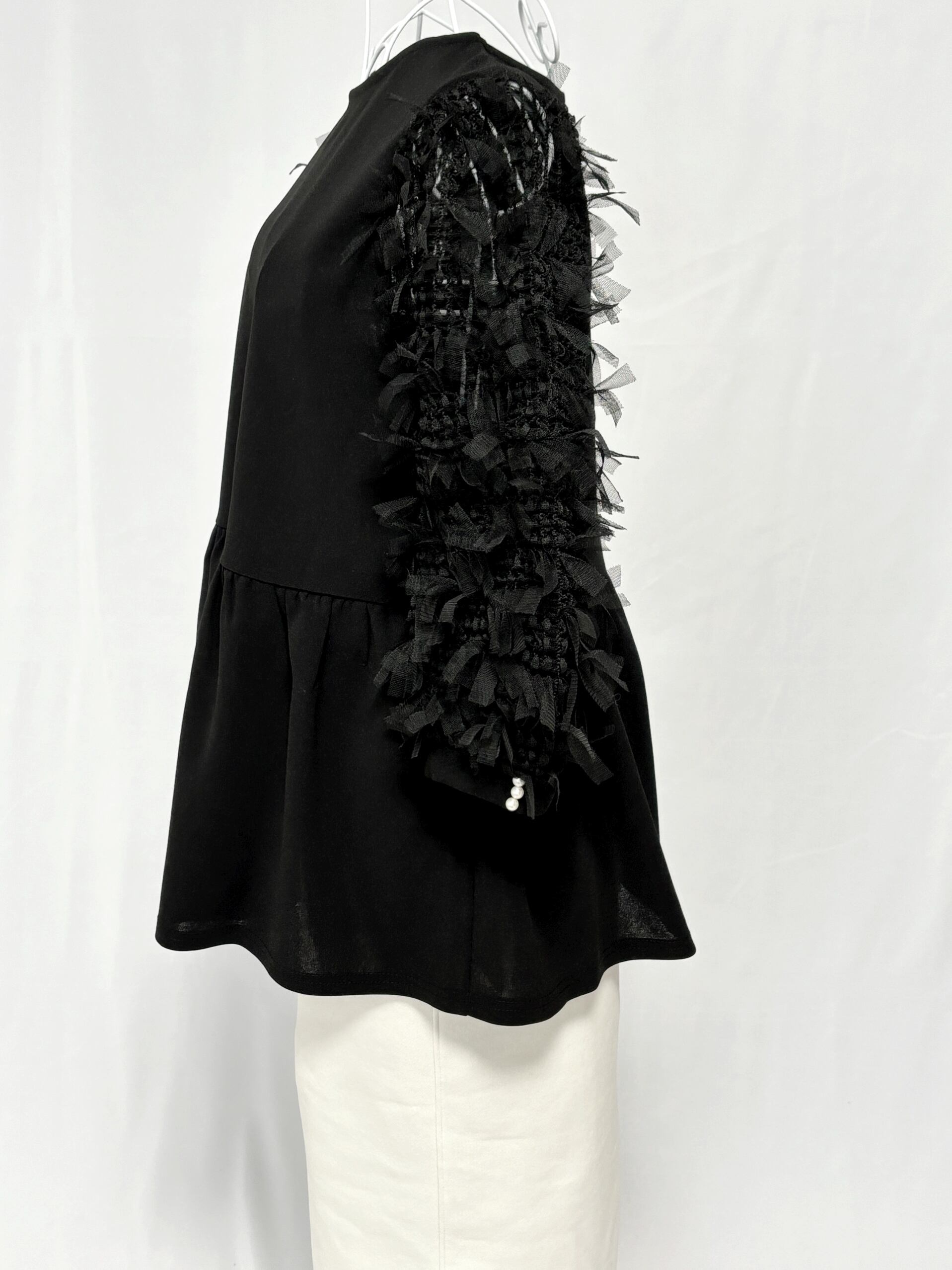 INCEDE インシード ボリュームスリーブトップス♡ボリュームスリーブ ボリューム袖 ブラック リボン ペプラム トップス