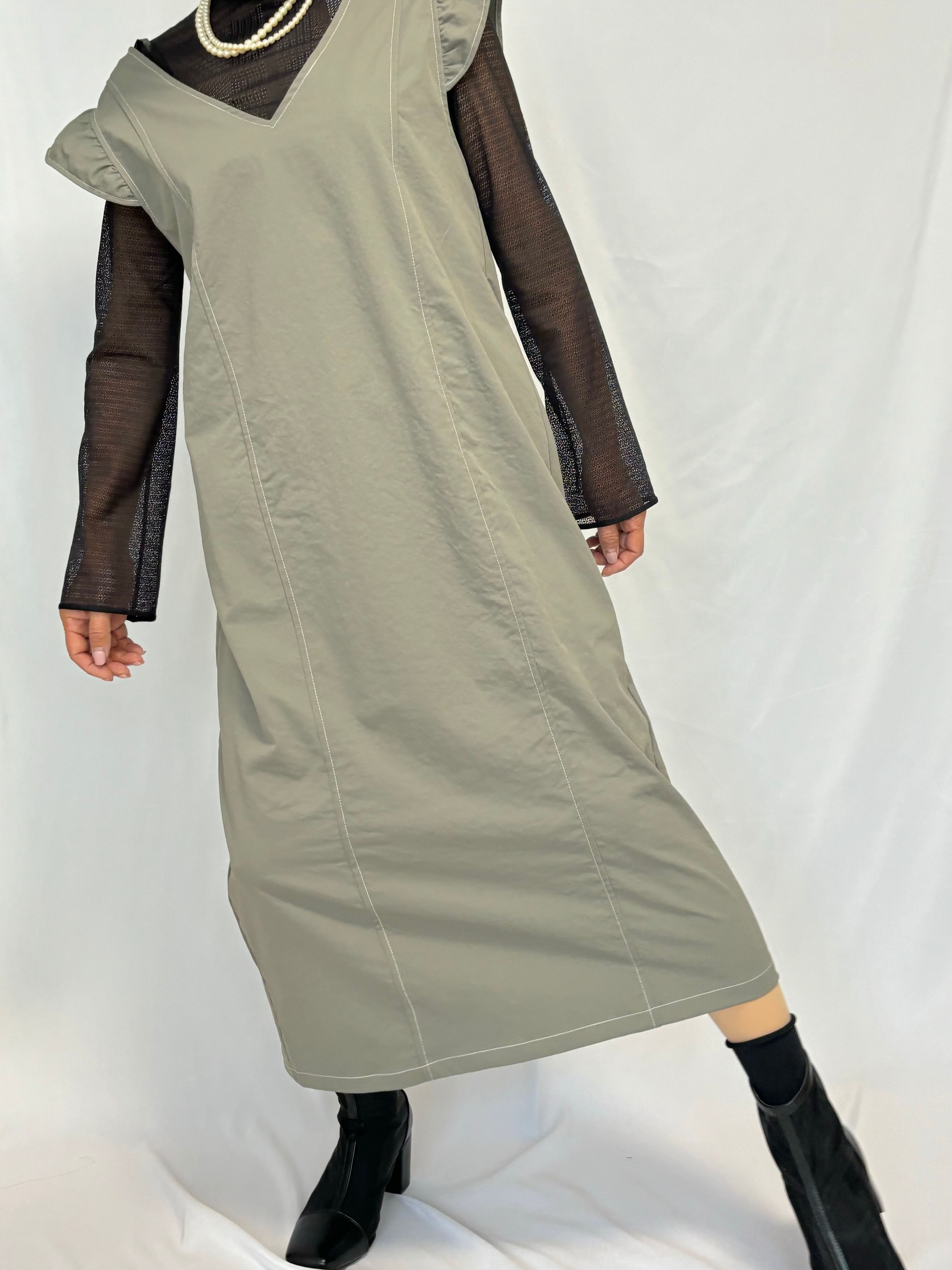 Blistorm ブリストーム 肩フリルカーキワンピース♡ワンピース カーキ ジャンパースカート