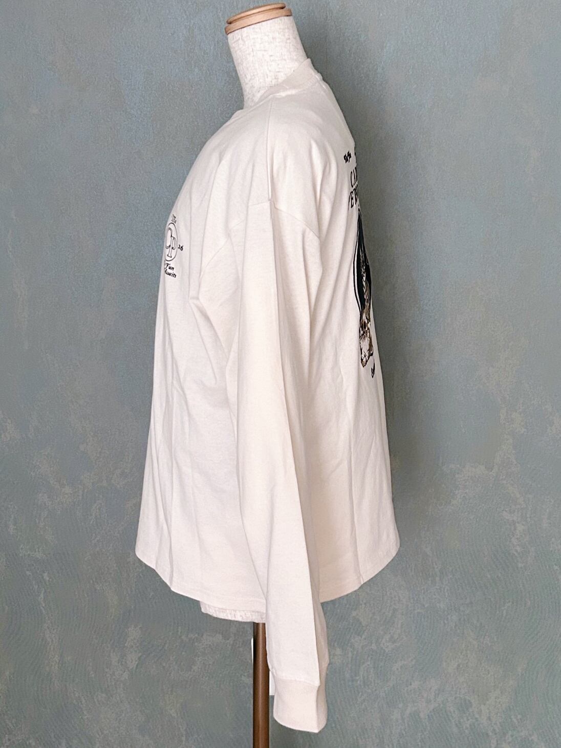 Power To The People パワートゥザピープル ワンポイントロゴプリント&バックBIGイラスト 刺繍デザイン ロングスリーブTシャツ CAT ♡オフホワイト メンズ M 刺繍Tシャツ ロンT 猫