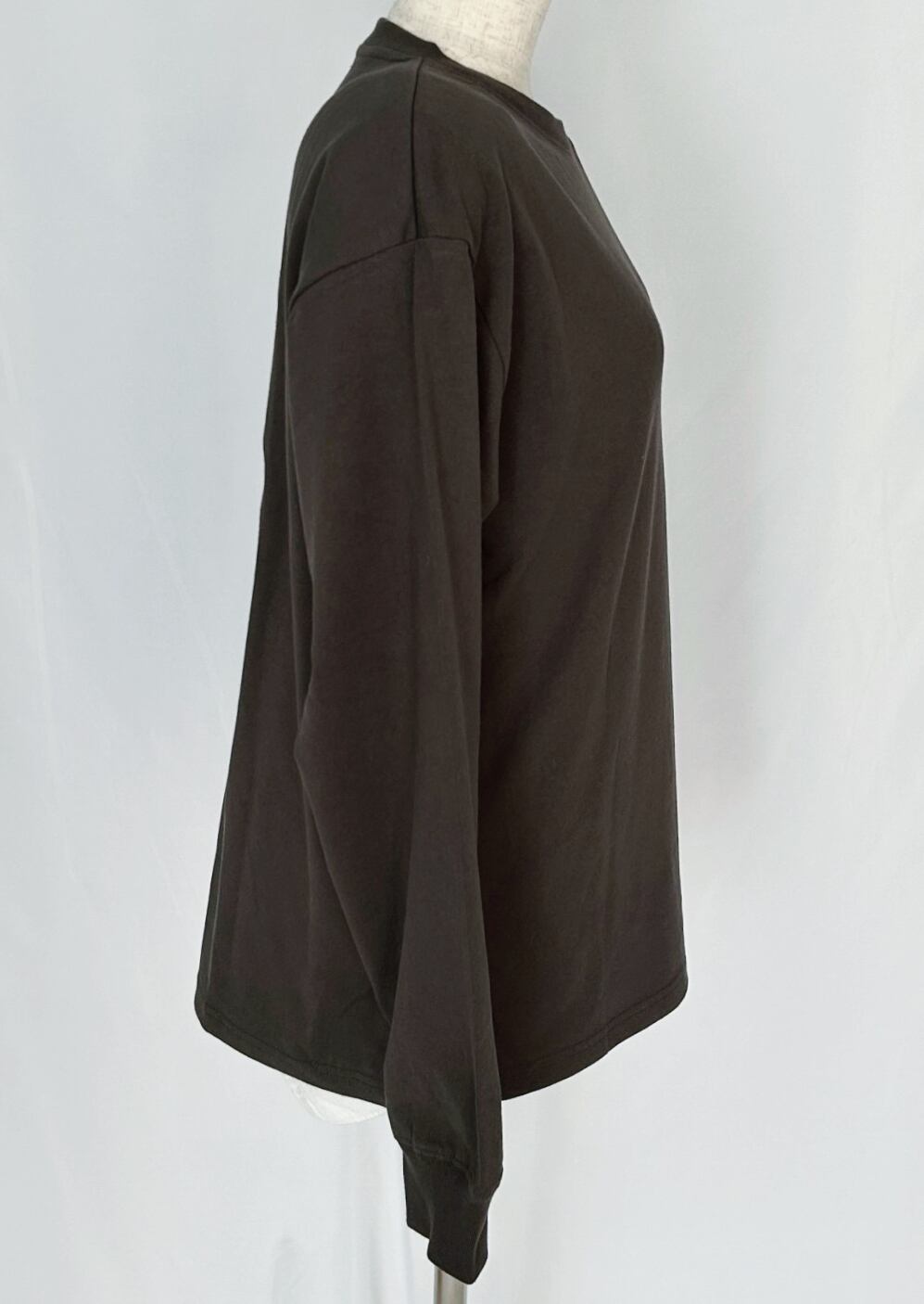 サイズ感は程よく身幅が広いワイドシルエットであるため、オーバーサイズにすることで、より流行りのゆるいシルエットを演出し、多くのアイテムとの相性も抜群◎