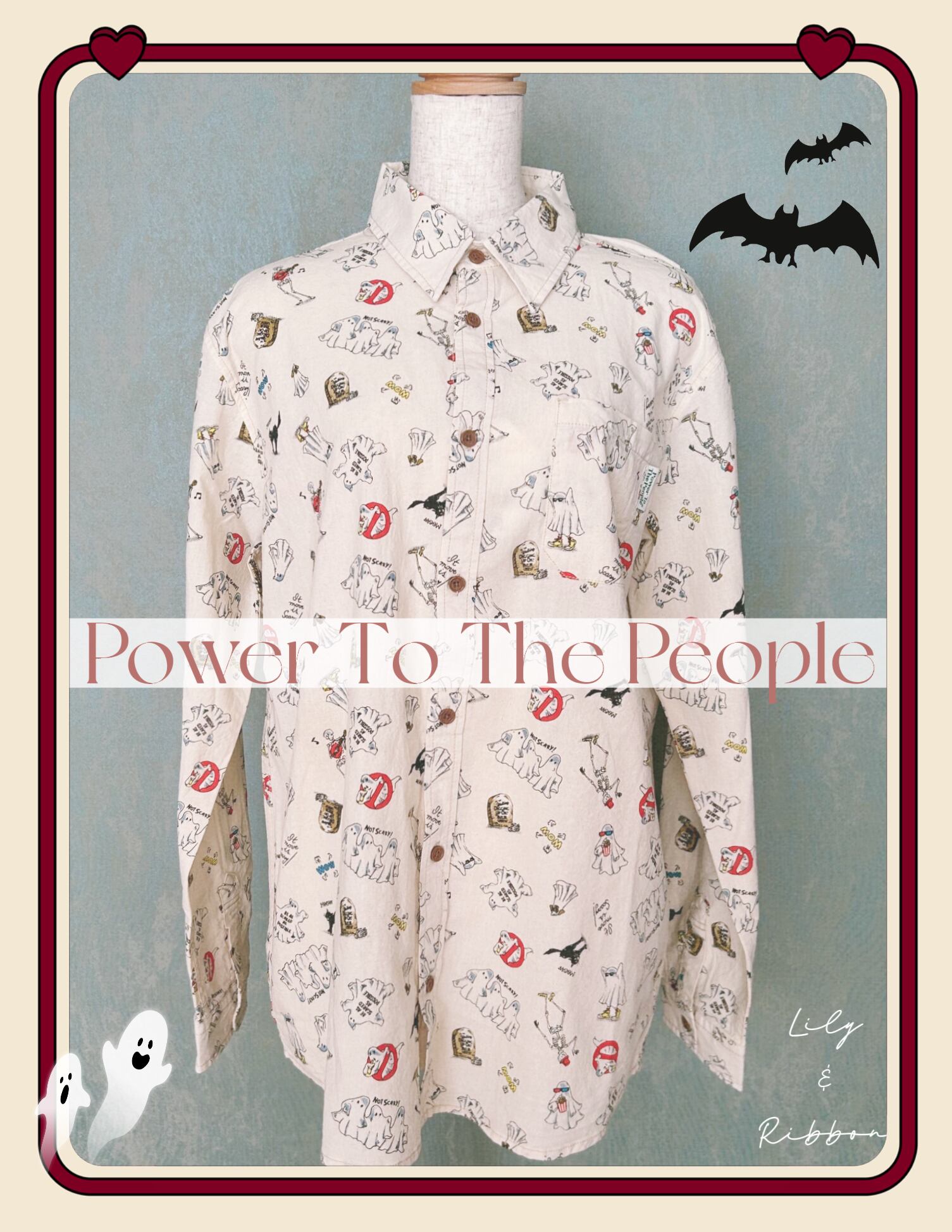 ハロウィンにぴったり★ Power To The People パワートゥーザピープル ゴースト柄 長袖シャツ♡メンズ M ハロウィン 総柄プリント Halloween
