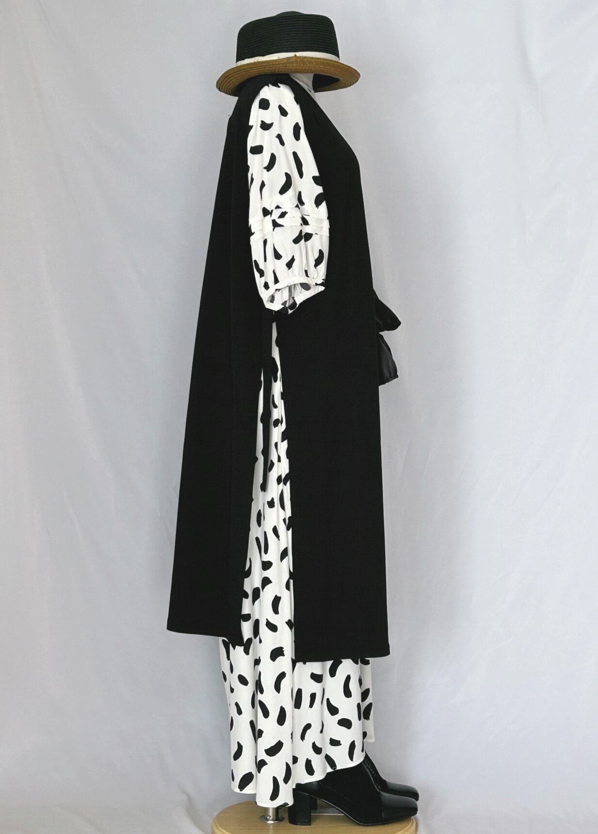サイドベルトロングジレ♡ノースリーブベスト ジレ ロングジレ ブラック