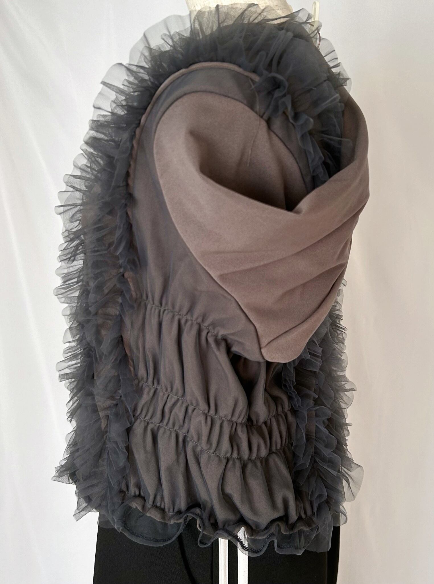 カットソーにチュールレースフリルをドッキングし