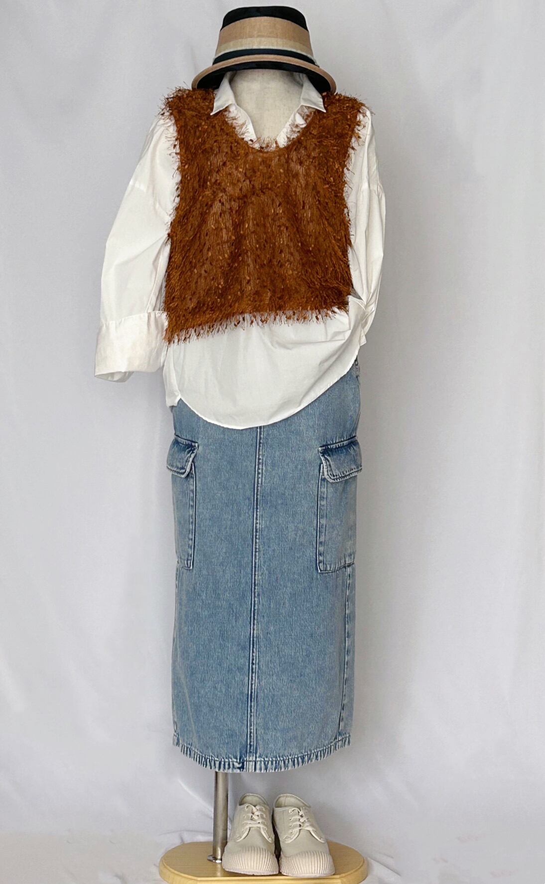 また、カジュアルからドレスシーンまで着用おすすめの、着まわしのきく華やかな雰囲気のベストです。